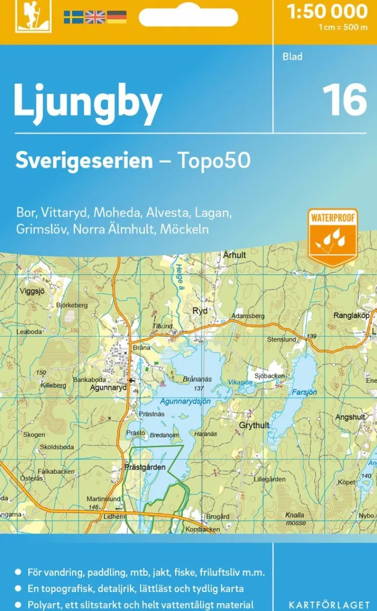 Sverigeserien är en kvalitetskarta som är gjord för att användas! Aktuellt kartdata är hämtat från Lantmäteriet och den är tryckt på Polyart som är helt vattentåligt och slitstarkt. Det mjuka materialet tål att vikas om och om igen. Den klarar både vinterns och sommarens ibland utmanande väder i Sverige. Kartorna har en utförlig teckenförklaring på svenska, engelska och tyska.