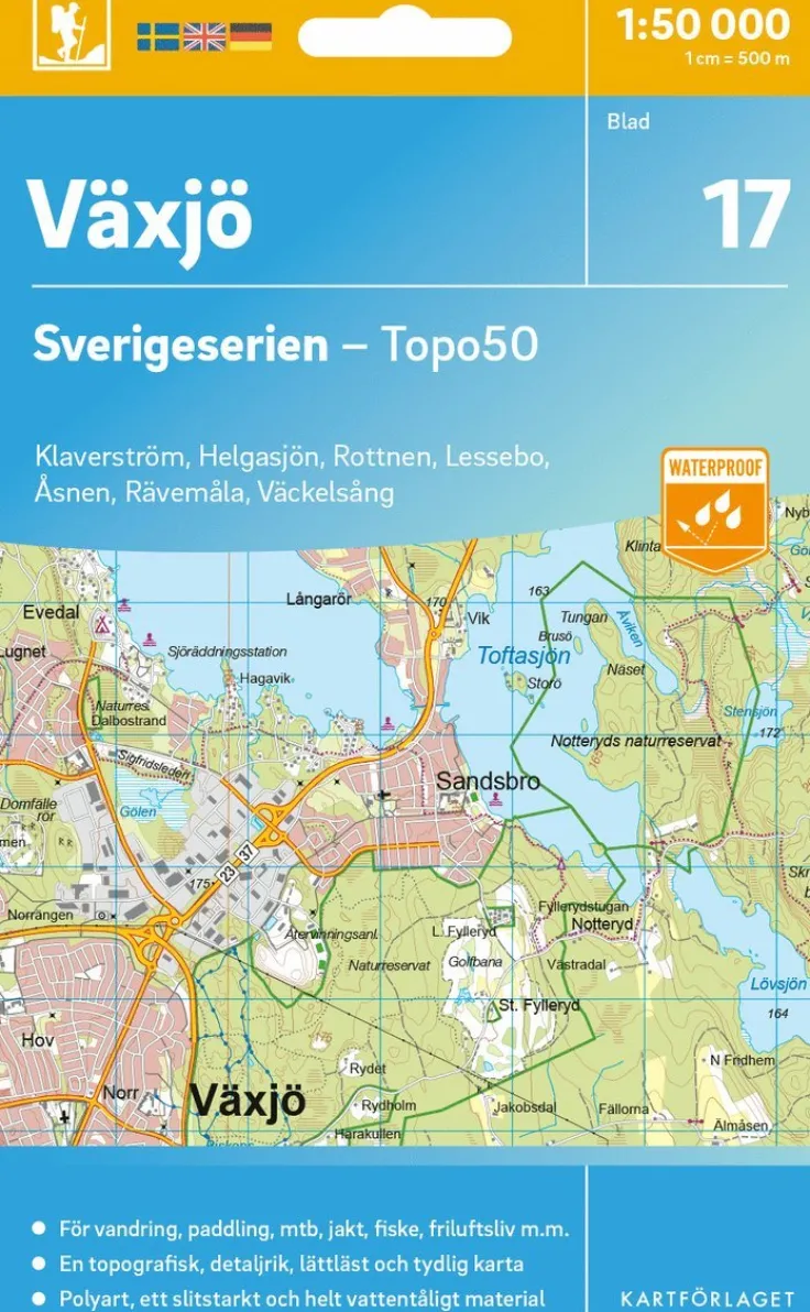 Sverigeserien är en kvalitetskarta som är gjord för att användas! Aktuellt kartdata är hämtat från Lantmäteriet och den är tryckt på Polyart som är helt vattentåligt och slitstarkt. Det mjuka materialet tål att vikas om och om igen. Den klarar både vinterns och sommarens ibland utmanande väder i Sverige. Kartorna har en utförlig teckenförklaring på svenska, engelska och tyska.