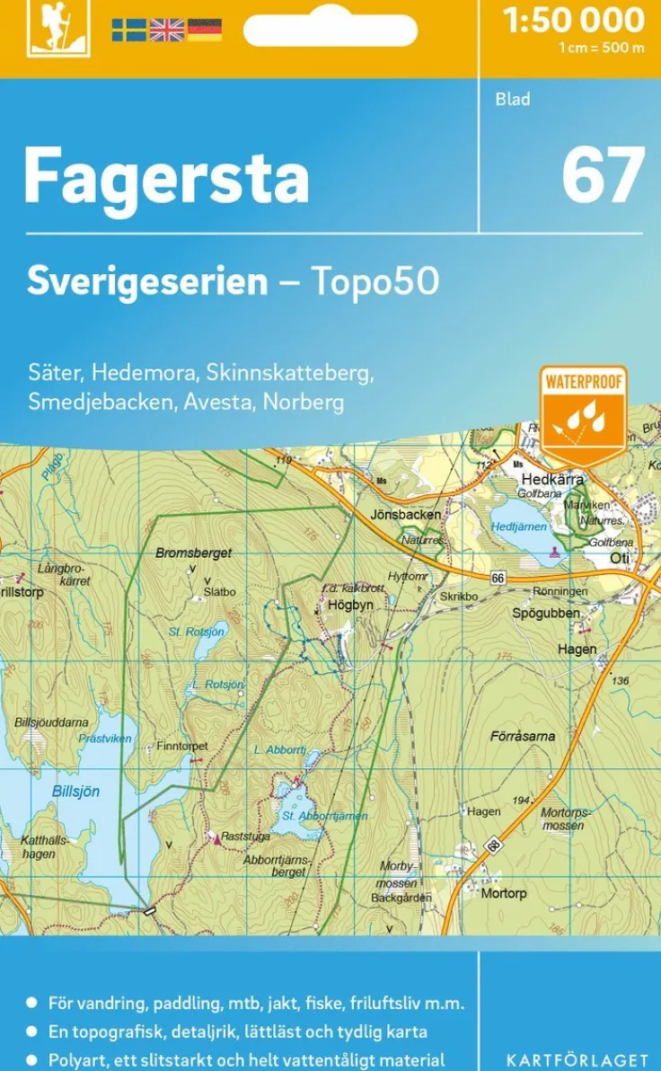 Sverigeserien är en kvalitetskarta som är gjord för att användas! Aktuellt kartdata är hämtat från Lantmäteriet och den är tryckt på Polyart som är helt vattentåligt och slitstarkt. Det mjuka materialet tål att vikas om och om igen. Den klarar både vinterns och sommarens ibland utmanande väder i Sverige. Kartorna har en utförlig teckenförklaring på svenska, engelska och tyska.