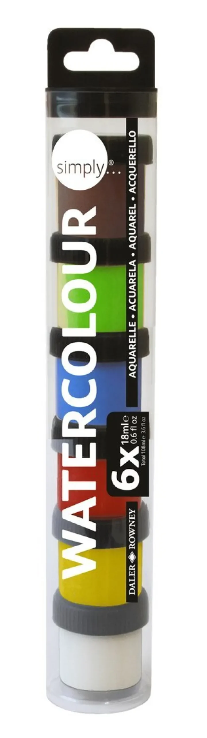 Daler Rowney 6-pack 18ml akvarellfärg, perfekt för både nybörjare och den mer erfarna konstnären.