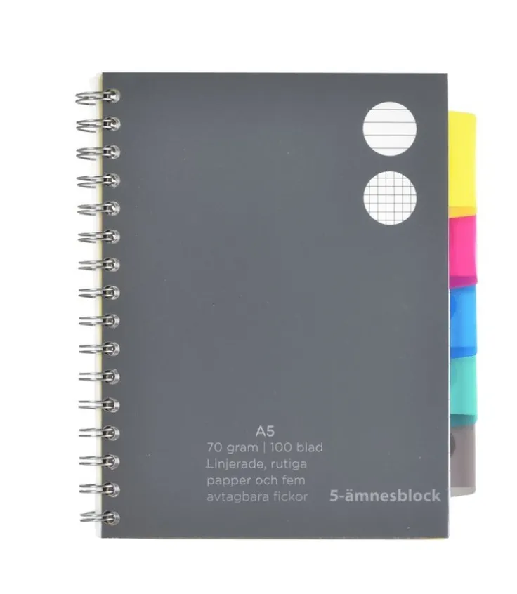 Ett flerämnesblock i smidigt format som enkelt ryms i väskan. Med detta ämnesblock håller du enkelt reda på olika ämnen! Ingår i Akademibokhandelns egen kollektion – Kollektion Stora A.