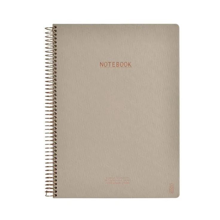 KOZO Premium anteckningsbok är definitivt en av de snyggaste anteckningsböckerna på marknaden. Det kraftiga canvasomslaget med vackra detaljer i brons och den kaxigt stora spiralen, även den i brons, gör den perfekt att skriva och ta anteckningar i, både när du har den liggandes i knät eller till och med stående utan stöd. Och givetvis en vacker inredningsdetalj till ditt skrivbord. Att skriva på det cremefärgade 100 g pappret ger en lyxig känsla. Alla 160 sidor i anteckningsboken har en datumrad uppe till höger, enkelt och praktiskt. Matchar alla andra KOZO skrivbordsartiklar i samma färgnyanser.