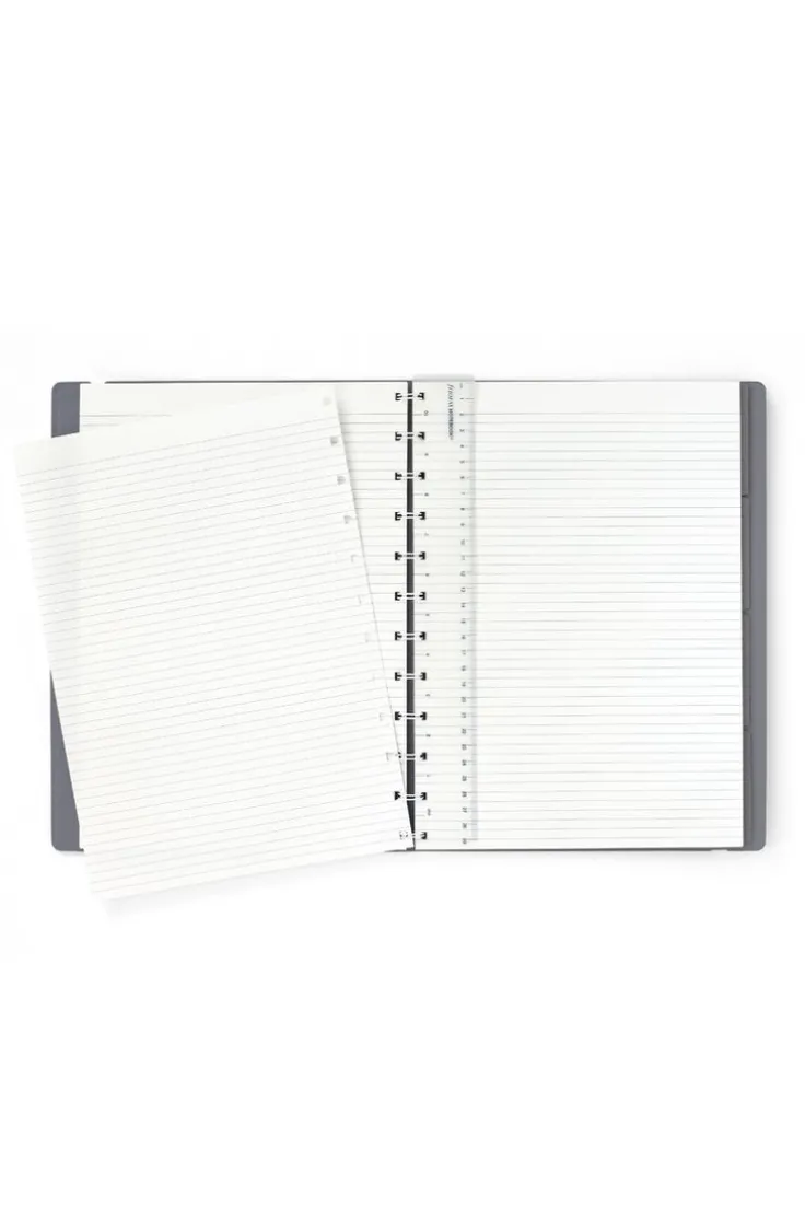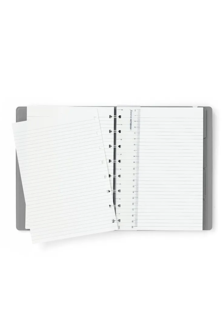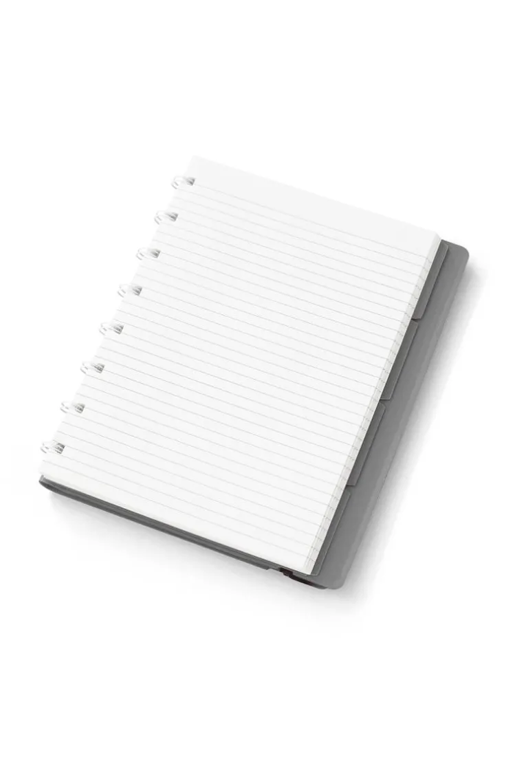Ta din anteckningar till nästa nivå med Filofax påfyllningsbara A5 anteckningsbok. Kanske marknadens mest flexibla anteckningsbok!? Med flytt- och påfyllningsbara linjerade 100 g ark, blir det en hållbar anteckningsbok som lätt blir en av favoriterna. Stilfullt och tåligt omslag i konstläder. Dubbelspiralen gör att den ligger plant mot bordsytan men kan även vikas 360 grader om anteckningarna behöver göras i knät exempelvis. Innehåller 56 linjerade ark, fyra avdelare varav en av dem med en ficka och en linjal/sidmarkör.