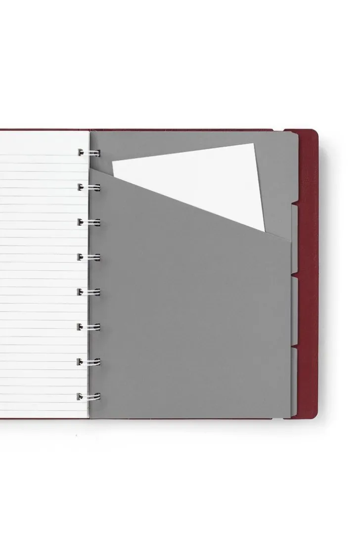 Ta din anteckningar till nästa nivå med Filofax påfyllningsbara A5 anteckningsbok. Kanske marknadens mest flexibla anteckningsbok!? Med flytt- och påfyllningsbara linjerade 100 g ark, blir det en hållbar anteckningsbok som lätt blir en av favoriterna. Stilfullt och tåligt omslag i konstläder. Dubbelspiralen gör att den ligger plant mot bordsytan men kan även vikas 360 grader om anteckningarna behöver göras i knät exempelvis. Innehåller 56 linjerade ark, fyra avdelare varav en av dem med en ficka och en linjal/sidmarkör.