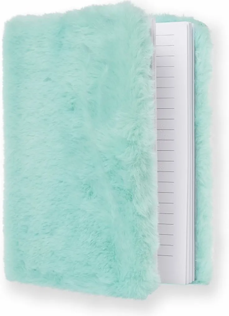 Turkos anteckningsbok i mjukt, fluffigt material. Linjerade sidor, A5. I samma serie finns även pennor och pennfodral i flera färger.