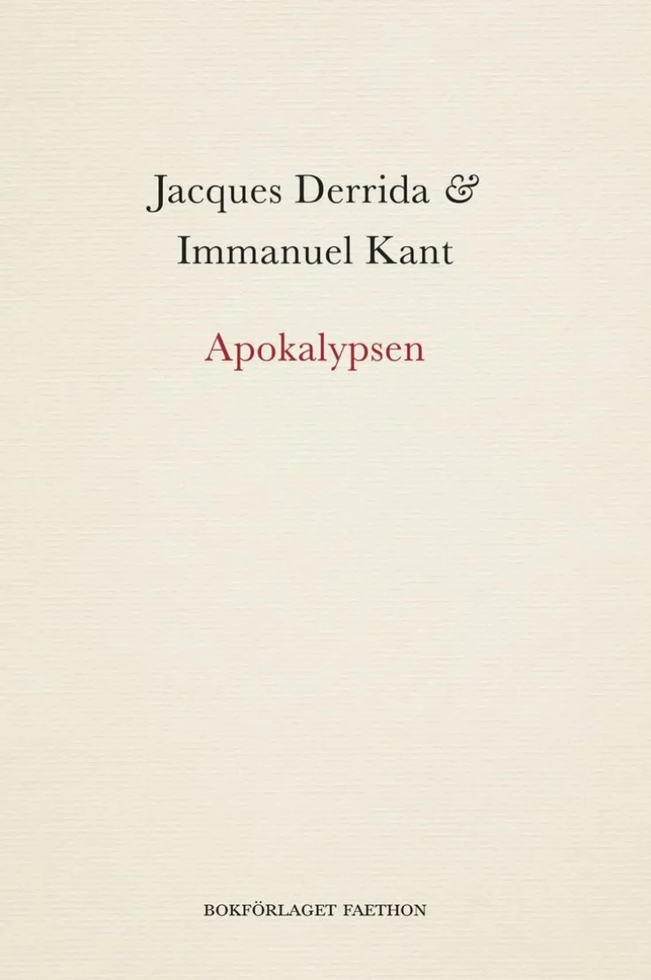 Apokalypsen samlar två av Jacques Derridas texter om apokalypsen och tre artiklar av Immanuel Kant om alla tings slut och den förnäma tonen i filosofin.