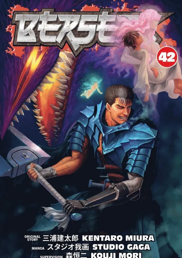 The first new BERSERK chapter since the passing of original creator Kentaro Miura in 2021! Volume 42 has been made by Miura’s longtime assistants Studio Gaga, under the supervision of his closest friend, Koji Mori. The shocking appearance of Griffith on Elf Island has provoked rage and terror in Guts and Casca… and carved a rift into the enchanted isle itself, setting loose a corrosive horde of devourers from beneath the earth! If the Black Swordsman cannot rely upon even his legendary blade, escape by ship seems the only hope for survival… but not everyone is leaving Elf Island together!