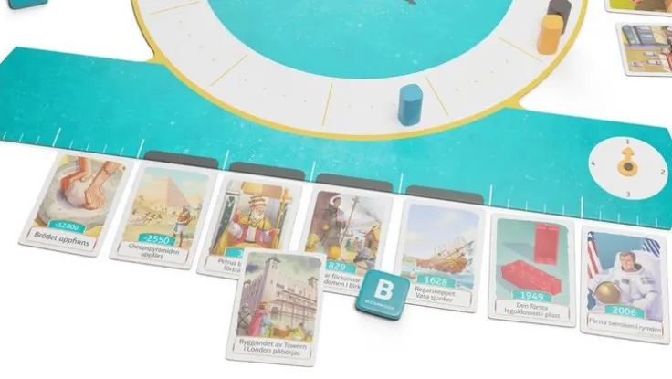 I BEZZERWIZZER Timeline ska ni placera historiska händelser i rätt kronologisk ordning. Det blir en resa genom historien där du ska använda kunskap och taktik för att lista ut om DYNAMITEN verkligen uppfanns efter TUGGUMMIT men före ESPRESSOMASKINEN. Dessutom kan du få extra poäng om du vet att en motståndare har lagt en händelse på fel plats, eller så kan du stjäla deras favorithändelser – men kom ihåg att de kan göra detsamma mot dig!