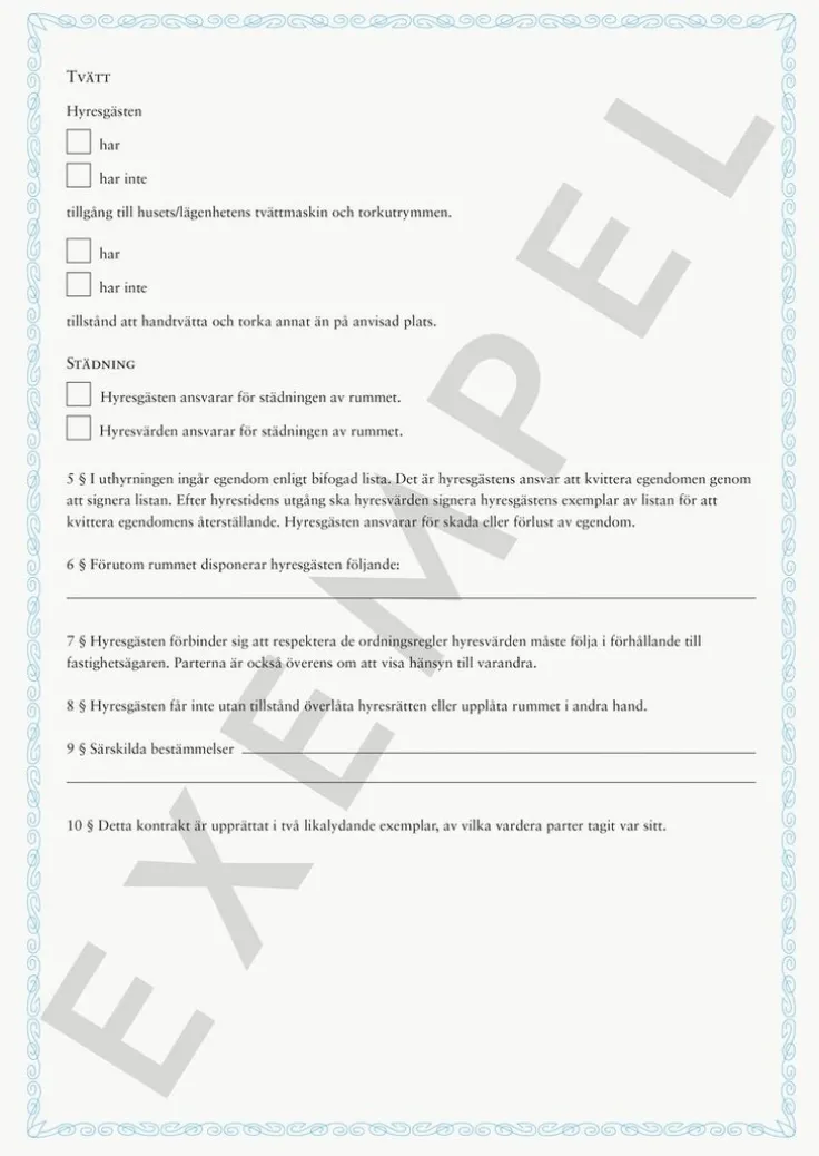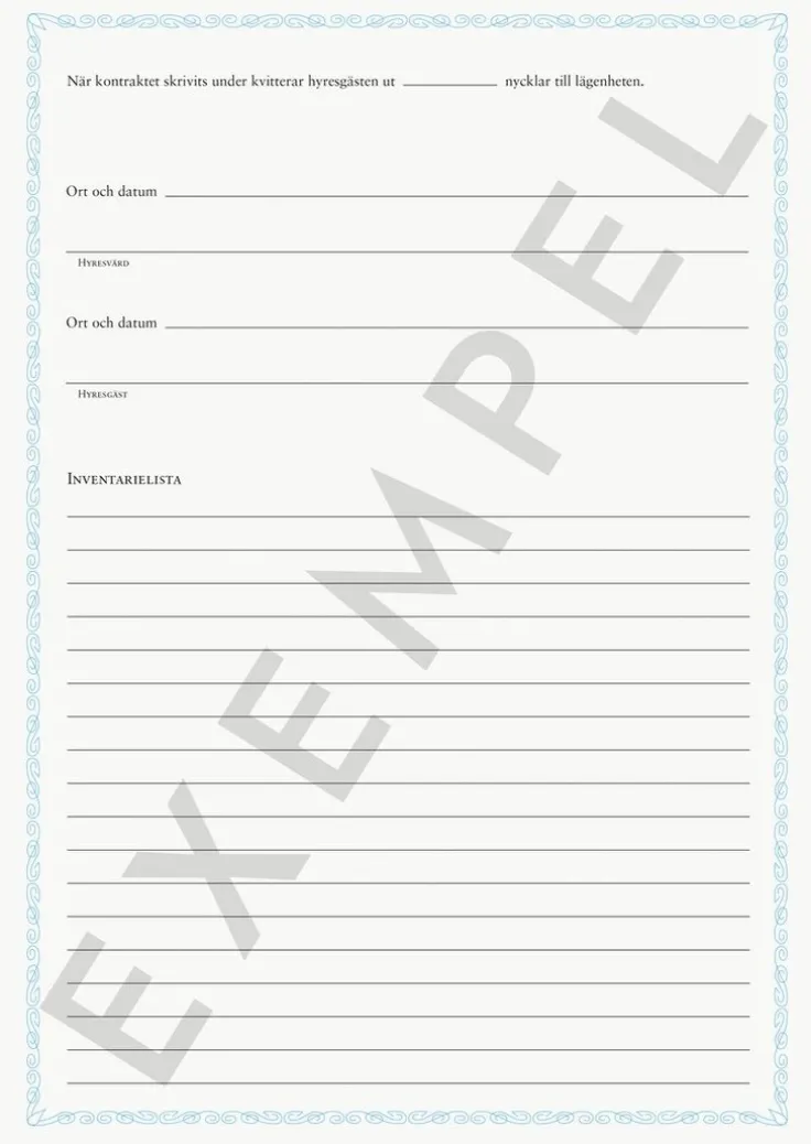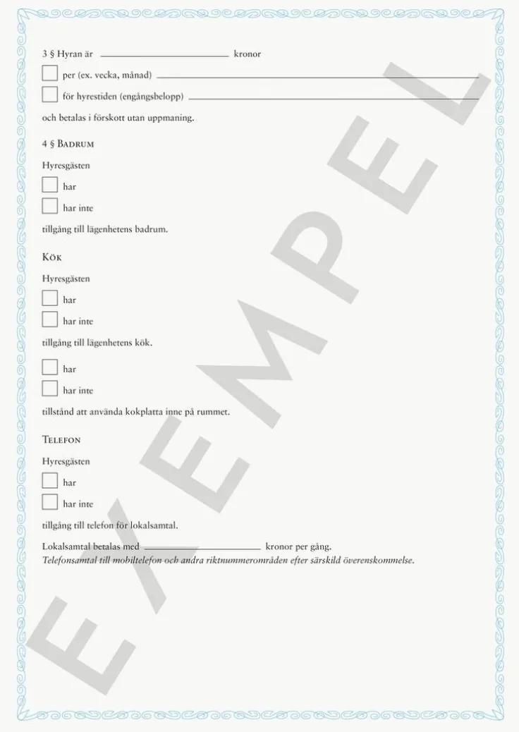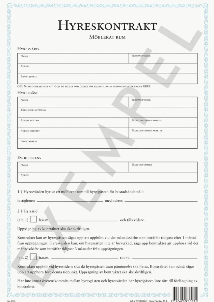 Blankett Hyreskontrakt möblerat rum