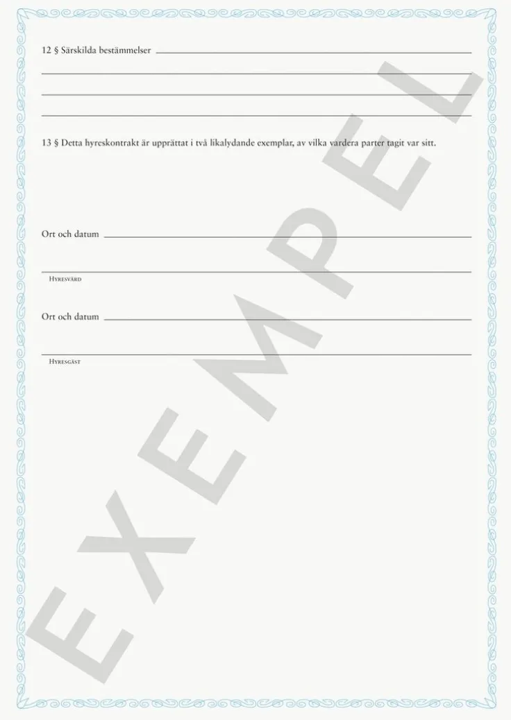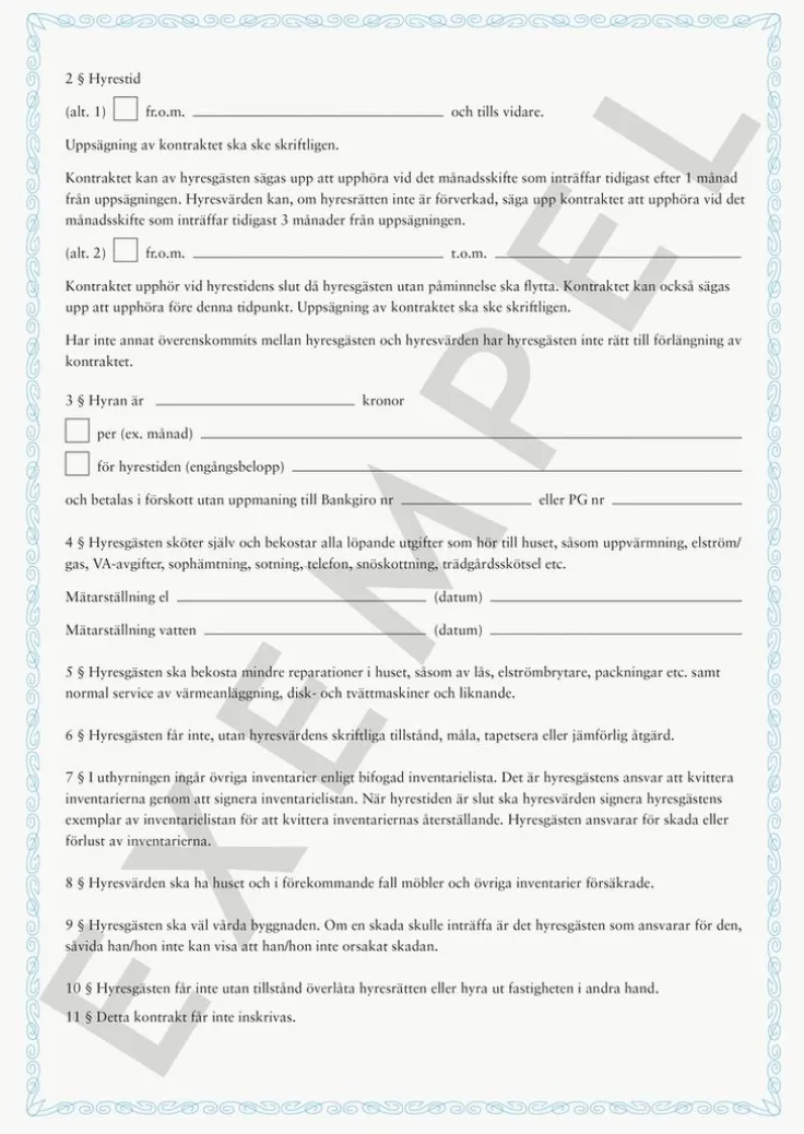 Blankett Hyreskontrakt villa