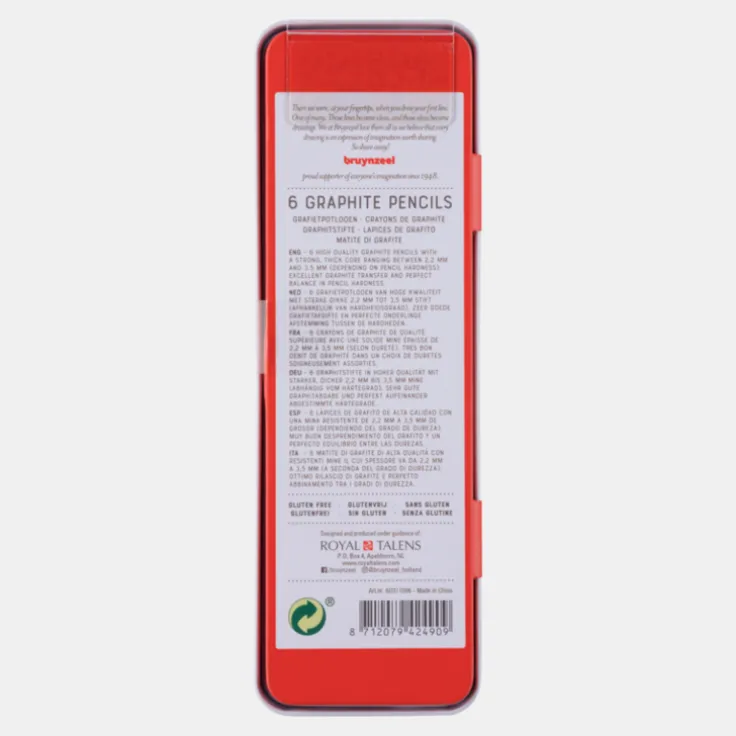 Grafitpenna av hög kvalitet för såväl teckning, skisser och skuggning. Innehåller olika hårdhetsgrader. Set om 6 pennor som är förpackade i ett praktiskt skyddande metalletui.