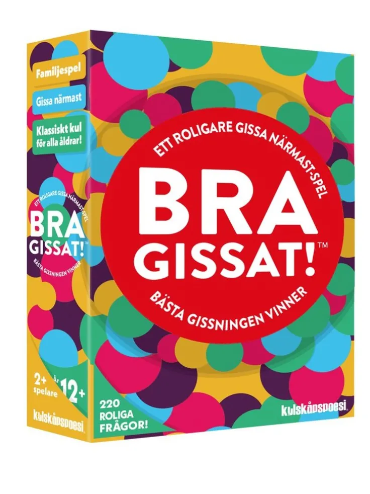 Över 200 frågorFokus på att gissa, inte vetaExtra poäng för exakta svarUppmuntrar till humoristiska diskussionerLämpar sig för alla spelareDet här spelet är en riktigt underhållande upplevelse med över 200 roliga och intressanta frågor där målet är att gissa det närmaste svaret. Du behöver inte veta det exakta svaret; den bästa gissningen vinner poäng, vilket gör det möjligt för alla att vinna. Om du träffar rätt med ett perfekt svar får du extra poäng!Det är ett roligt frågespel med en stor dos humor som garanterat kommer att leda till roliga diskussioner, många skratt och udda gissningar. Perfekt för sammankomster med vänner och familj, detta spel säkerställer att alla har en chans att lysa med sina gissningsfärdigheter.