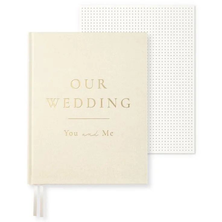 Bröllopsbok från Paperstyle med svensk design är speciellt framtagen för bröllop, med texten Our Wedding / You & Me präglat i guld på bokens framsida. I den här boken kan du fånga och spara alla magiska stunder – från planering och skisser, till gästlistor och hälsningar. Med de olinjerade sidorna får du full kreativ frihet att designa den precis som du önskar. Det följer även med ett löst blad som har linjer på den ena sidan och prickar på den andra vilket gör att du kan använda boken med olinjerad, linjerad eller prickad inlaga. Wedding Journal har ett exklusivt svenskt 115 grams papper från Munken som är FSC-och Cradle to Cradle certifierat, syrafritt, åldersbeständigt och kommer från ett av världens renaste pappersbruk. Den har ett hållbart och vackert textilomslag från Europa och pärmens insida består till 100% av återvunnen papp. Den är producerad CO2-neutralt på ett noga utvalt bokbinderi i Europa. Wedding Journal är framtagen med stor omtanke om vår miljö. Färg: Off-white