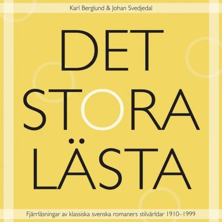 Vilken svensk författare varierar sin stil mest? Sådana frågor har varit svåra att besvara för litteraturvetenskapen. Med fjärrläsningar – datorstödda analyser av digitaliserade fulltexter – ändras detta. Det stora lästa innehåller fjärrläsningar av 339 välkända svenska romaner utgivna under 1900-talet. Urvalet har gjorts genom ett utvidgat litteratursociologiskt klassikerbegrepp som omfattar både verk som har blivit kanoniserade och sådana som hade stora samtida publikframgångar – eller både och. I analyserna ställs Selma Lagerlöf och Gösta Oswald bredvid Sigge Stark och Sjöwall & Wahlöö. Genom kvantitativa jämförelser undersöker Karl Berglund och Johan Svedjedal stildrag i verken och visualiserar deras egenart i förhållande till varandra. Här framträder en på samma gång omfattande och detaljerad bild av de stilistiska repertoarerna i den svenska 1900-talsromanen. Karl Berglund (f. 1983) är docent och biträdande lektor i litteraturvetenskap vid Uppsala universitet. Hans forskning har behandlat samtidens bokmarknad och läskultur, ofta med fokus på digitaliseringens effekter och populärlitteraturen. Hans senaste bok är Reading Audio Readers. Book Consumption in the Streaming Age (2024). Johan Svedjedal (f. 1956) är professor emeritus i litteraturvetenskap, särskilt litteratursociologi, vid Uppsala universitet. Hans forskning har gällt svensk bokmarknad och svenska författares karriärer under de senaste två seklerna. Senast utgav han Dä kvetter. Gustaf Fröding som student (2025).