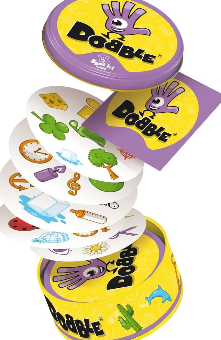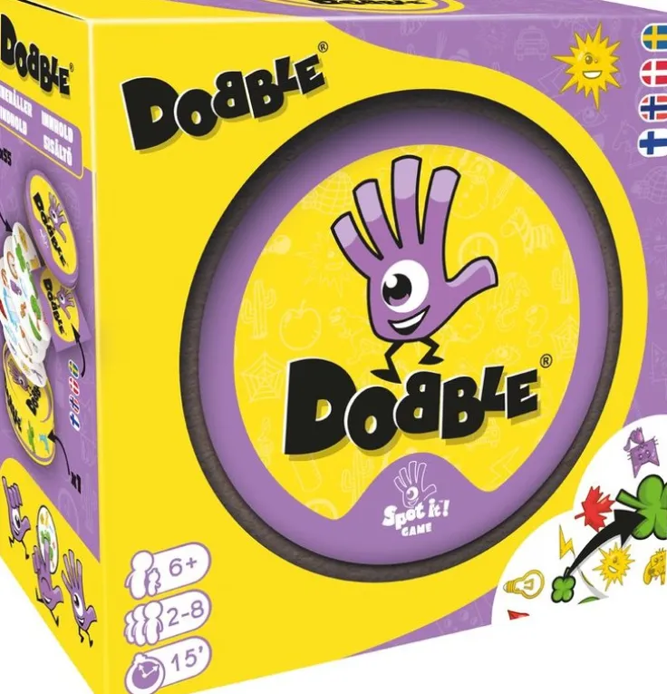 Dobble är ett roligt familjespel med 55 olika kort med olika symboler där det gäller att snabbt hitta de identiska symbolerna. De olika symbolerna i Dobble varierar i storlek och placering vilket ger ett roligt, utmanande och varierande spel som passar både barn och vuxna. Det är ett lättspelat familjespel som är snabbt att komma igång med.