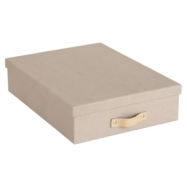 OSKAR Förvaringsbox – Enkel, stilren förvaringsbox gjord för papper och dokument. Dess platta format gör den perfekt att stapla flera och på så sätt hålla olika innehåll separat. Stark konstruktion som tål att användas varje dag. Ingår i en snygg och stilren skrivbordserie från Bigso som passar lika bra på kontoret som hemma, där du vill ha ordning och reda.Tillverkad av returpapp med ett ytskikt av återvunnet papper.Yttermått: 26 x 35 x 8,5cm