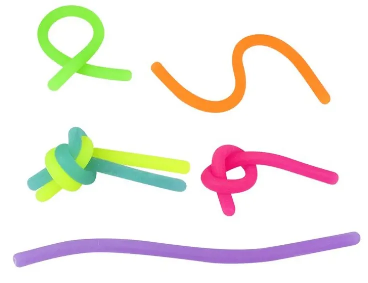 Bekämpa tristessen med ett eller flera av dessa coola och enastående elastiska Power-snören i klara färger som dessutom lyser i mörkret. Dessa tjocka snören kan faktiskt töjas ut till en längd på upp till 2 meter! Med dessa snören finns det massor av sätt att antingen ha skoj eller slappna av, antingen själv eller tillsammans med kompisar. Pröva till exempel att knyta olika sorters knutar, sträck ut snöret på olika sätt och mycket mer. Tack vare deras fosforescerande effekt kan snörena lysa i mörkret om de först laddas med ljus, så du behöver inte sluta leka med dem bara för att solen har gått ner och ljuset släckts. Dessutom kan du knyta snören runt sänggaveln, skrivbordsstolen och annat du vill kunna se på natten. Dessa snören kommer i 6 olika färger: violett, blått, gult, orange, grönt och rosa.