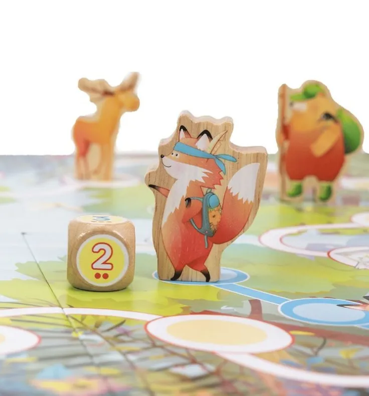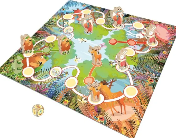 Gör dig redo att kasta dig genom skogen! För att vinna det här loppet måste du vara först med att hoppa längs spelstigen och ta med dig båda dina spelpjäser tillbaka till ditt målområde. Specialplatserna erbjuder oväntad hjälp!– Ett okomplicerat spel designat för de allra yngsta spelarna.– Med 8 fina träfigurer och en trätärning.– Inga plastdelar!