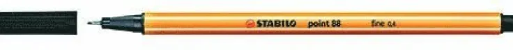 STABILO point 88 fineliner. Det är den enda finelinern som finns i så många som 47 olika färger. Skrivspetsen är metallomsluten för en längre livslängd för pennan. Med STABILO point 88 skrivs tunna fina linjer utan risk för att färgen smetas ut. Pennan är sexkantigt utformad med en lång ”cap off” tid och ventilerad huv och har en pennspets på 0,4 mm.