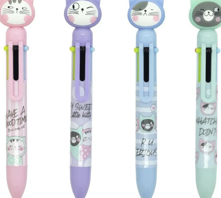 Flerfärgspenna 6 färger Katt – lila, rosa, blå, turkos