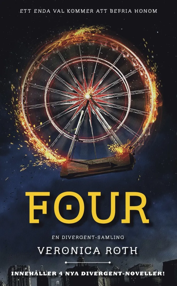 Fourpresenterar fyra nya noveller ur Divergent-trilogins värld. Var och en av dessa Falangbytaren, Kandidaten, Sonen ochFörrädaren utforskar Veronica Roths dystopiska framtid genom ögonen på den mystiske, karismatiske Tobias Eaton, även kallad »Four«.