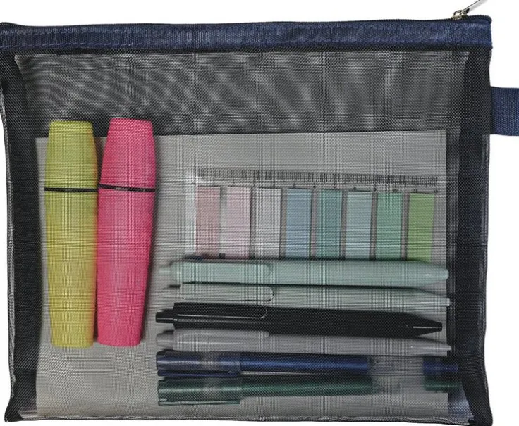 Det här praktiska pennfodralet är fullmatat med tio olika skrivtillbehör som gör vardagen lite enklare, oavsett om du sitter i skolbänken eller på kontoret. Fodralet 20×24 cm och är tillverkat i slitstarkt svart meshmaterial med dragkedja och blåa detaljer. Innehåll:– Linjerat skrivhäfte i A5-format– 2 överstrykningspennor– 2 bläckpennor– Stiftpenna 0,7mm– 2 gelpennor– Indexflikar– Linjal– Flerfärgpenna En del av Akademibokhandelns egen kollektion – Kollektion Stora A.