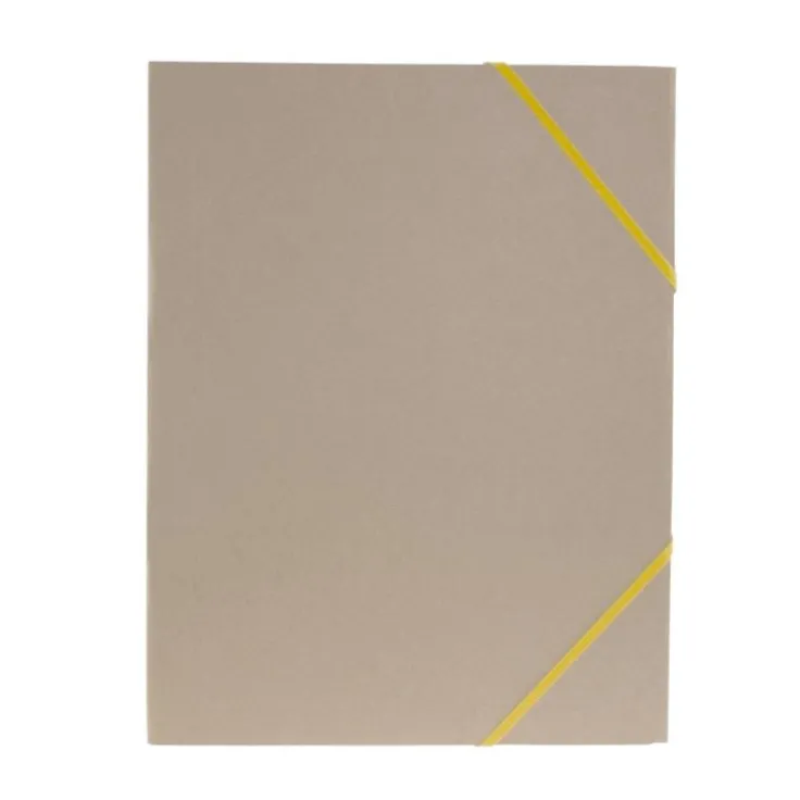3-fliks kraftfärgad gummisnoddsmapp av 100% återvunnet papper! Här med gula band.