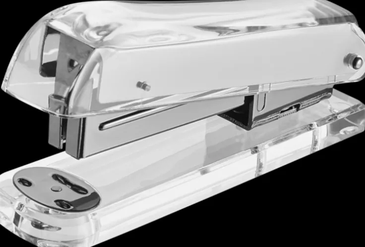 Snygg och praktisk häftapparat i transparent akryl. En häftapparat gör det lätt att organisera och hålla reda på dina dokument. 13 cm lång. Häftklammer 26/6. Produkten ingår i Akademibokhandelns egen kollektion – Kollektion Stora A.