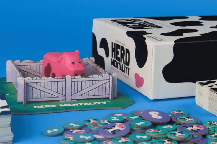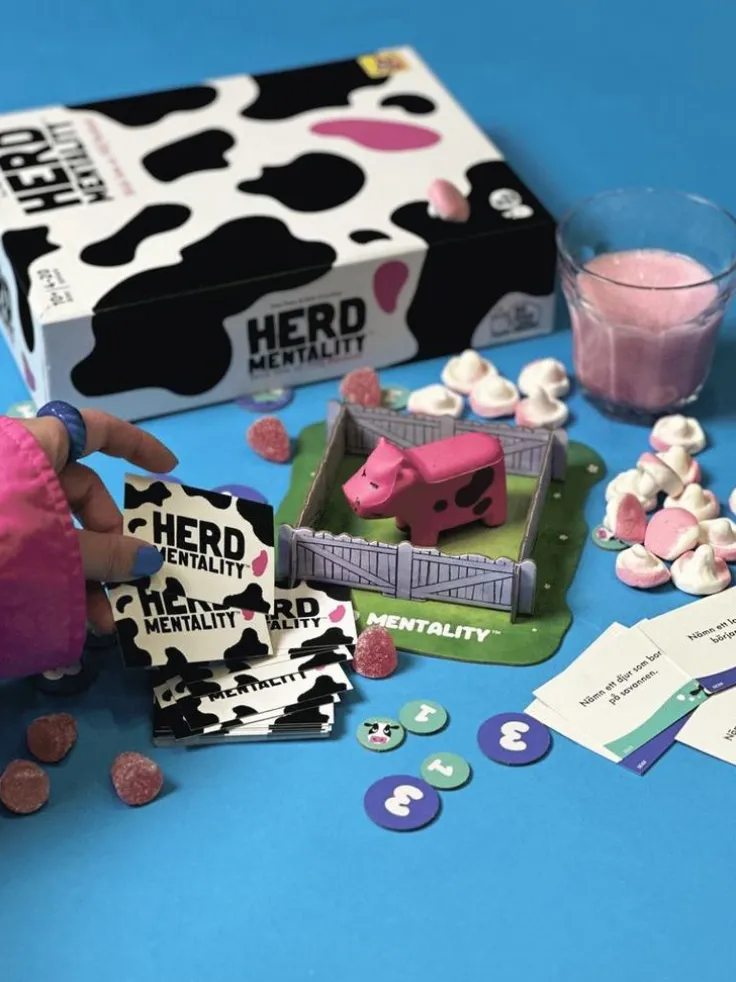 Herd Mentality är ett partyspel med ett enkelt mål: tänk som alla andra. Det börjar med en fråga i stil med ”Vilken sorts chips är godast?” Samtliga spelare skriver ned sitt svar, dolt för motspelarna. Om ditt svar tillhör majoriteten, vinner du kor. Men om ditt svar inte liknar någon annans måste du ta hand om den rosa kon och din flock är plötsligt inte värd någonting – just nu.