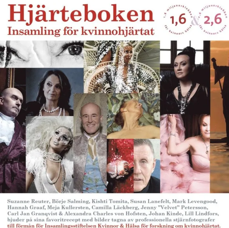 Hjärteboken säljs till förmån för forskning på kvinnohjärtat. Initiativet är taget av 1.6&2.6miljonerklubben och stiftelsen Kvinnor och Hälsa