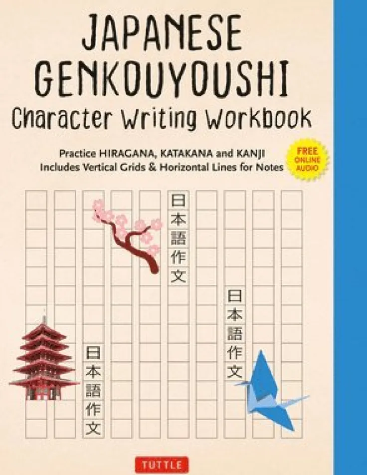 Learn to write Japanese the traditional way! This is the ideal workbook to use when learning to write Japanese in the traditional Genkouyoushi manner using vertical boxes. It includes a complete introduction to all 92 hiragana and katakana letters as well as the basic kanji needed for the AP and JLPT tests. The main body of the workbook has over 100 pages of blank vertical grids for handwriting practice as well as lined pages for notes. It also includes several pages of guided Audio Recordings handwriting exercises for the hiragana and katakana letters and 35 essential kanji characters, long with a list of vocabulary commonly appearing on Japanese language proficiency tests. Free online audio recordings by native Japanese speakers help you practice the pronunciations of all the letters and words in the book.
