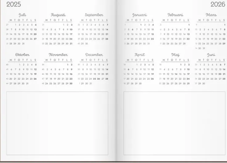 Att planera är en konst så varför skulle inte din kalender reflektera det också? Doodle är kalendern för dig som älskar att vara kreativ när du planerar din tid, och ger dig möjligheter för utlopp för ditt konstnärliga uttryck varje dag. I Doodle börjar kalendern med en årsöversikt med plats för notering och en årsplan. Varje vecka inleds med en praktisk to-do lista och sedan följer en ruta per dag för fritt planerande. Varje ny månad kommer med en liten illustration som är unik för just den månaden. Kalendern avslutas med en tydlig årsplan för nästkommande år och 11 prickade sidor för fria anteckningar. Kalendern har ett tjockare papper för att förhindra att din penna blöder igenom.Kalender 25/26 från Burde. Format: A5. Layout: Rutor. Vecka/uppslag. Kalendarium: 2025-06-16 – 2026-07-19. Omslag: Kartong med struktur. Inbunden. Detaljer: Gummiband. Märkband. Innehåll: Månadsplanering, Anteckningssidor prickade, Veckoplan, Årsöversikt, Årsplaner. Antal sidor: 160. Miljöinformation: FSC®.