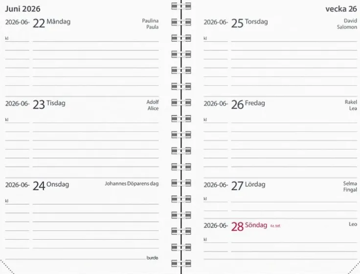 - Layout: Vecka/uppslag