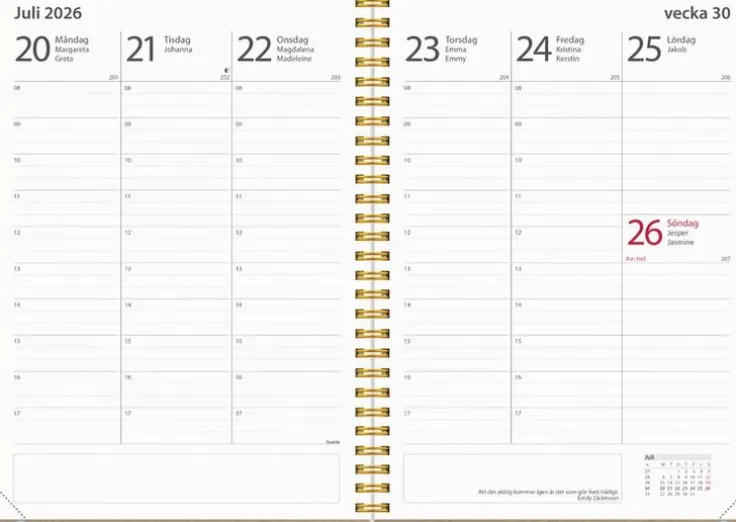 Study A5 är en praktisk kalender för den studerande. Med en stående layout samt timindelning 8-17 hjälper kalendern dig att behålla strukturen genom hela läsåret. Det finns även utrymme för att skriva upp årsplaner, scheman och provresultat för att lättare kunna reflektera över akademisk utveckling. För att underlätta organiseringen har Study även en praktisk förvaringsficka. Allt du behöver för ett framgångsrikt läsår!Kalender 25/26 från Burde. Format: A5. Layout: Stående. Vecka/uppslag. Timindelning 8-17. Kalendarium: 2025-06-02 – 2026-08-30. Omslag: Återvunnen kartong. Spiralbunden. Detaljer: Gummiband. Pappersficka. Innehåll: Schema, Provresultat, Årsplaner. Antal sidor: 176. Miljöinformation: FSC®. Omslag i återvunnen kartong.