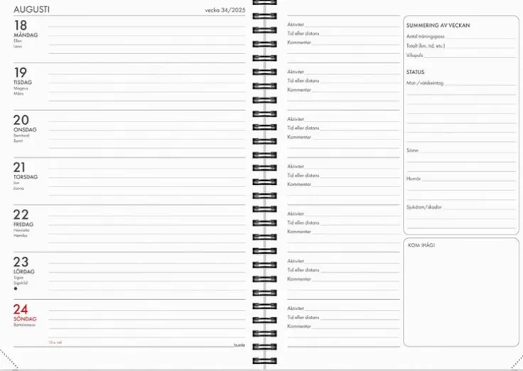 - Layout: Vecka/uppslag