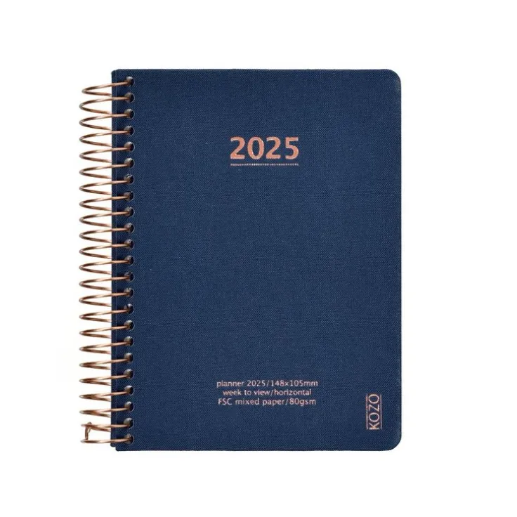 KOZO Kalender 2025 är en stilren, trespråkig årskalender som är perfekt för att organisera både jobb, skola och vardag.Det hårda omslaget och den kaxigt stora ryggspiralen gör det enkelt att öppna och skriva i kalendern även när du är på resande fot. Kalendern innehåller elegant crèmefärgat papper och är klädd i ett lyxigt canvastyg med detaljer präglade i brons.Minimalistisk liggande layout med en vecka per uppslag, där du har lika mycket plats för planering på alla veckans dagar. I varje uppslag har du dessutom plats för anteckningar och en smidig översikt över kommande veckors datum. Kalendern innehåller årsöversikter med helgdagar för 2025 och 2026 för Sverige, Danmark och Norge, årsplaneringar, plats för personlig information och linjerade sidor för egna anteckningar.Språk: Svenska, danska och norska. Kalendarium: 30 dec 2024 – 4 jan 2026. FSC-märkt papper.