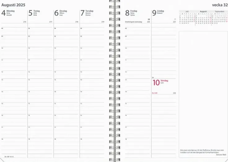 - Layout: Vecka/Uppslag