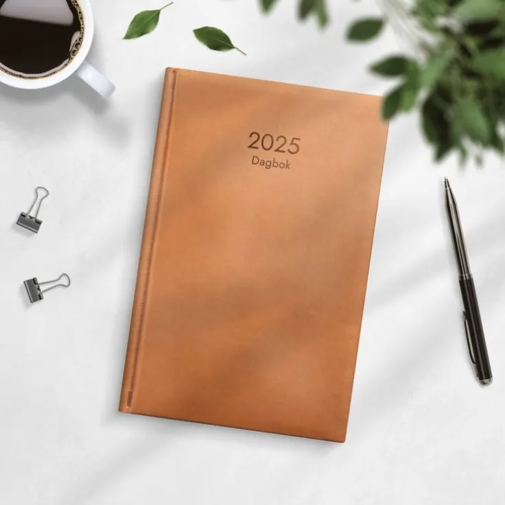 Kalender 2025 Dagbok cognac konstläder