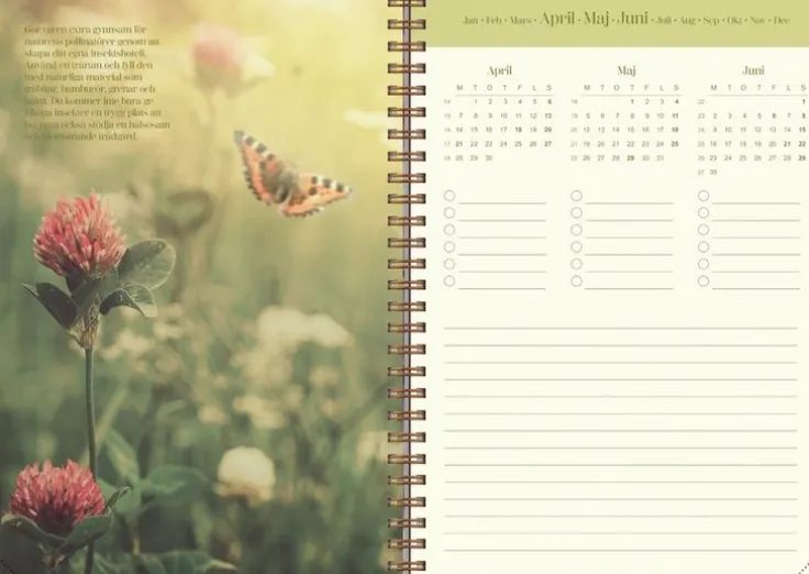 Inspireras och förverkliga dina drömmar samtidigt som du håller koll på din planering. Inlagan har cremefärgat papper och det vackert illustrerade omslaget är som en dröm i sig. Månadsöversikt varje kvartal med checklista och anteckningsyta.Kalender 2025 från Burde. Format: A5. Layout: Stående. Vecka/uppslag. Timindelning 8-18. Kalendarium: 2024-12-02 – 2026-01-04. Omslag: Kartong med struktur. Spiralbunden. Detaljer: Gummiband. Innehåll: Årsöversikter, årsplaner. Antal sidor: 160. Miljöinformation: FSC®.