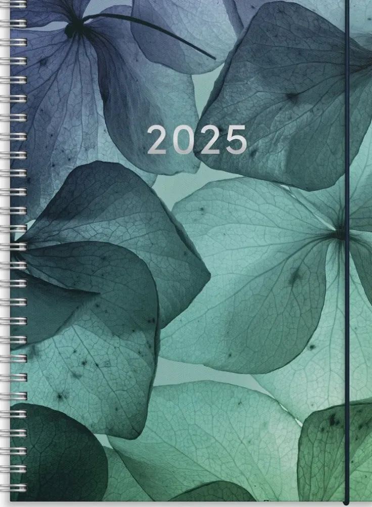 Kalendern har ett naturinspirerat motiv, skira blad i trendiga blågröna färger. Kalendern har ett uppslag med liggande layout där fokus ligger på tydlig veckoplanering. Inlagans layout passar dig som har mycket på gång, oavsett veckodag. Kalendern är enkel och tydlig med lika mycket utrymme för både vardag och helg.Kalender 2025 från Burde. Format: A5. Layout: Liggande. Vecka/uppslag. Timindelning 8-19. Kalendarium: 2024-12-09 – 2026-01-04. Omslag: Kartong med struktur. Spiralbunden. Detaljer: Gummiband. Pappersficka. Innehåll: Årsöversikter, årsplaner, månadsöversikt på varje uppslag. Antal sidor: 144. Miljöinformation: FSC®.