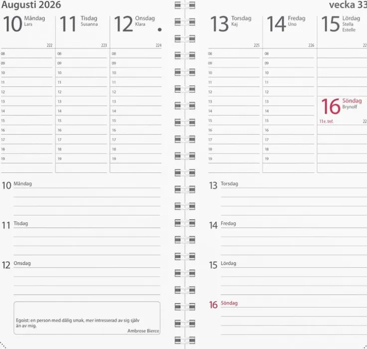 - Layout: Vecka/uppslag