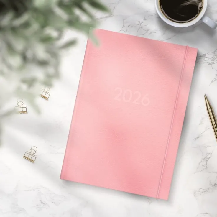 Kalender i smakfullt omslag med textillik struktur. Kalendern har ett uppslag med liggande layout där fokus ligger på tydlig veckoplanering. Inlagans layout passar dig som har mycket på gång, oavsett veckodag. Kalendern är enkel och tydlig med lika mycket utrymme för både vardag och helg.>Kalender 2026 från Burde. Format: A5. Layout: Liggande. Vecka/uppslag. Kalendarium: 2025-12-08 – 2027-01-03. Omslag: Konstläder. Inbunden. Detaljer: Gummiband. Märkband. Innehåll: Kyrkliga helgdagar, flaggdagar, helgdagar/aftnar, månfaser, namnsdagar, temadagar/händelser, årsöversikt/årsöversikter, årsplan/årsplaner,. Antal sidor: 144. Miljöinformation: FSC®.