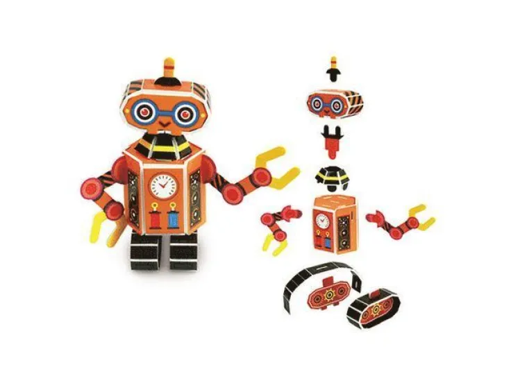 Paketet innehåller ark till tio kluriga robotar i fina färger och med spännande detaljer, och kommer med en enkel instruktionsbok. Alla robotar har olika specialområden – en gillar att uppfinna, en annan att städa och en älskar musik. Passar från 5 år. Byggsatserna är i kvalitativ och stabil kartong, både tåliga att leka med och fina att samla på, och perfekta som presenter eller följeslagare under resor.