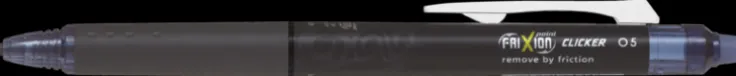 Skriv följsamt och med hög precision med Pilots nya FriXion Point Clicker! En stilren penna med fin spets vars innovativa teknik och bläck garanterar en skön skrivkänsla. Den stora bläckkapaciteten inuti spetsen ger ett jämnt och stabilt bläckflöde från start. Med den fina spetsen på 0,5 mm kan du skriva med otroligt hög precision. Detta tillsammans med Pilots värmekänsliga FriXion-bläck ger en oslagbar skrivupplevelse. Friktion från suddet gör att bläcket försvinner och du kan direkt skriva på nytt med samma penna. Spara pengar och gör miljön en tjänst genom att byta refill i din FriXion Point Clicker istället för att köpa en helt ny penna när bläcket tar slut. Aldrig har det varit så enkelt att tänka grönt!