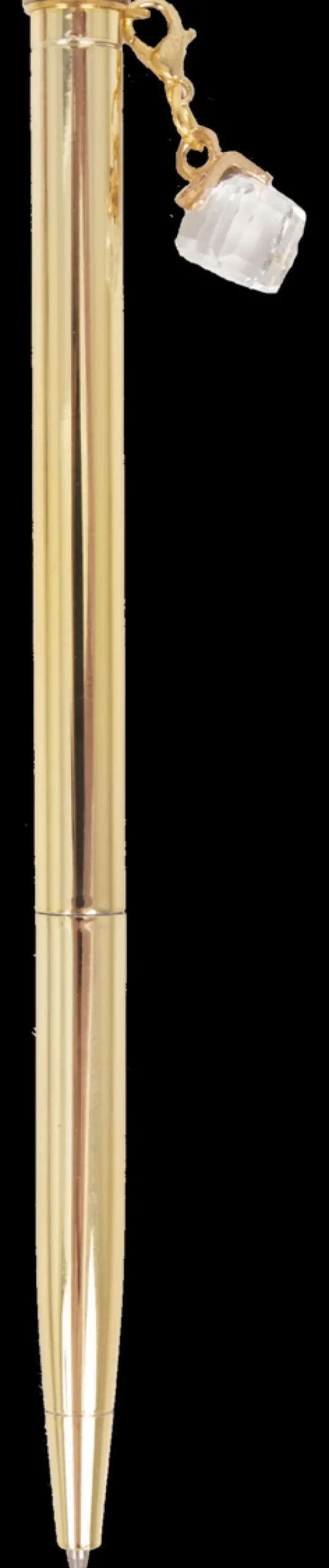 Lyxig bläckpenna i guldfärgad metall, med en vacker sten som hänger ner från toppen av pennan. Bläckpennan har en bekväm klickfunktion, svart bläck och 1 mm spets. En perfekt kulspetspenna för dig som vill skriva, planera och kludda med stil! Längd: ca 14 cm.