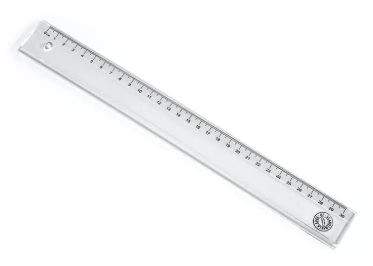 Transparent linjal från Edge of Scandinavia i hård tålig plast med hål. Den klassiska linjalen mäter 30 centimeter. Ett måste på varje skrivbord!