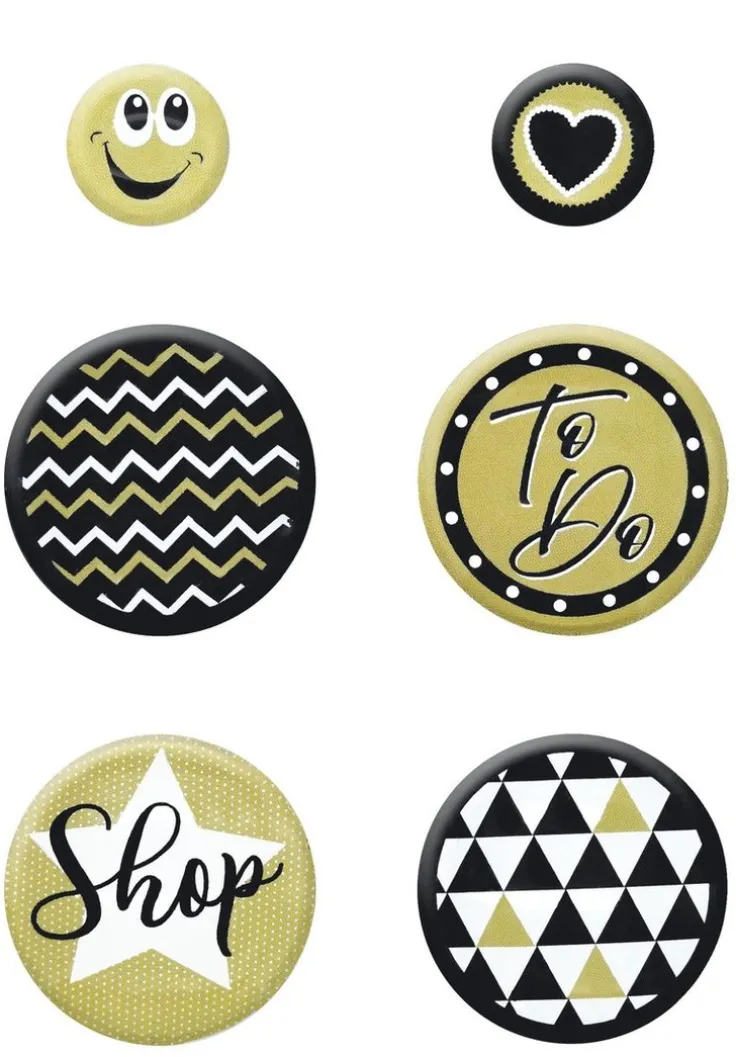 Magneter i glas med mörk design. 4st i storleken 35mm och 2st i storleken 18mm.