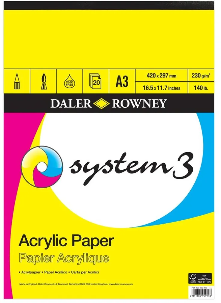 Daler-Rowney System3 målarblock akryl. 20 ark, 230 gr, A3.