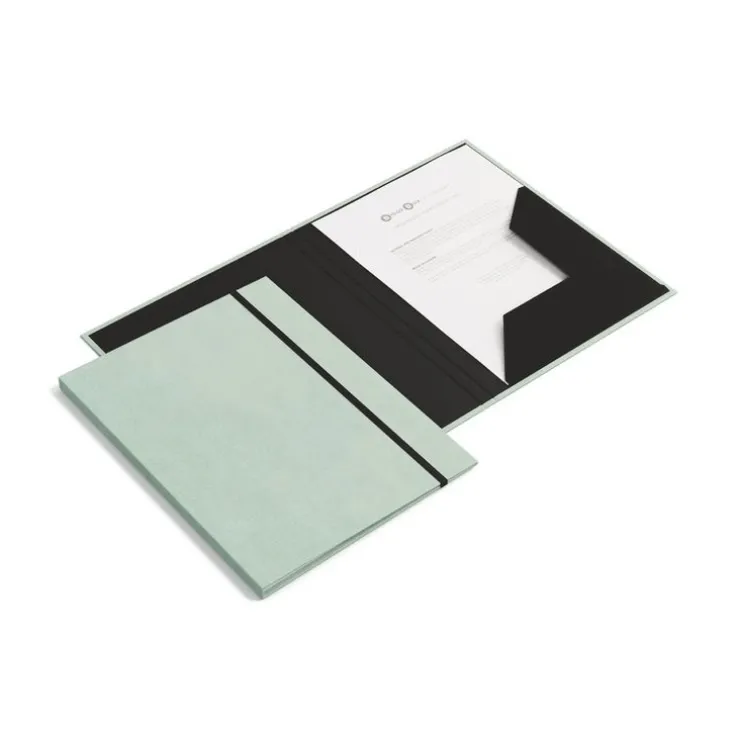 PAULINA mapp med ficka från svenska familjföretaget Bigso – Stillren och praktik snoddmapp med inneficka. Stängs med ett längsgående gummiband som håller dina dokument på plats. Med ett robust omslag som tillåter daglig användning.Ingår i en snygg och stilren skrivbordserie från Bigso som passar lika bra på kontoret som hemma, där du vill ha ordning och reda.Anpassat for A4 format. Tillverkad av 100% återvunnen fiberpapp med ett ytskikt av 100% återvunnet papper.Mått: 23×31,5×1,5 cm