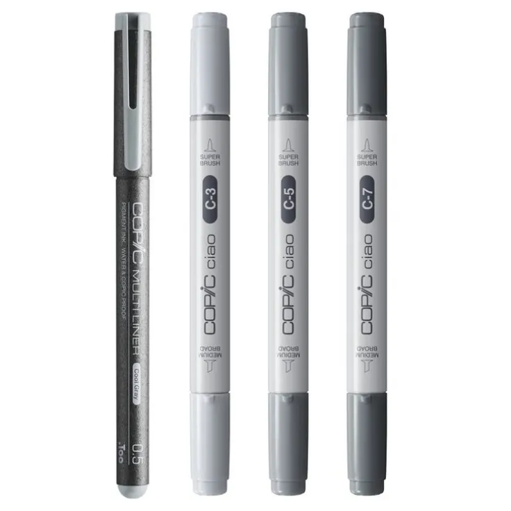 Copic Ciao är en professionell grafisk marker med två spetsar. Penselspets i ena änden och medelstor bred i andra, för mångsidiga penseldrag som ger fina detaljer och jämn täckning. Alla Copic Ciao är påfyllningsbara med bläck och spetsarna är utbytbara. Den är ultrablendbar och finns i 180 kulörer. Designad med barnsäkerhet i åtanke med perforerade korkar.